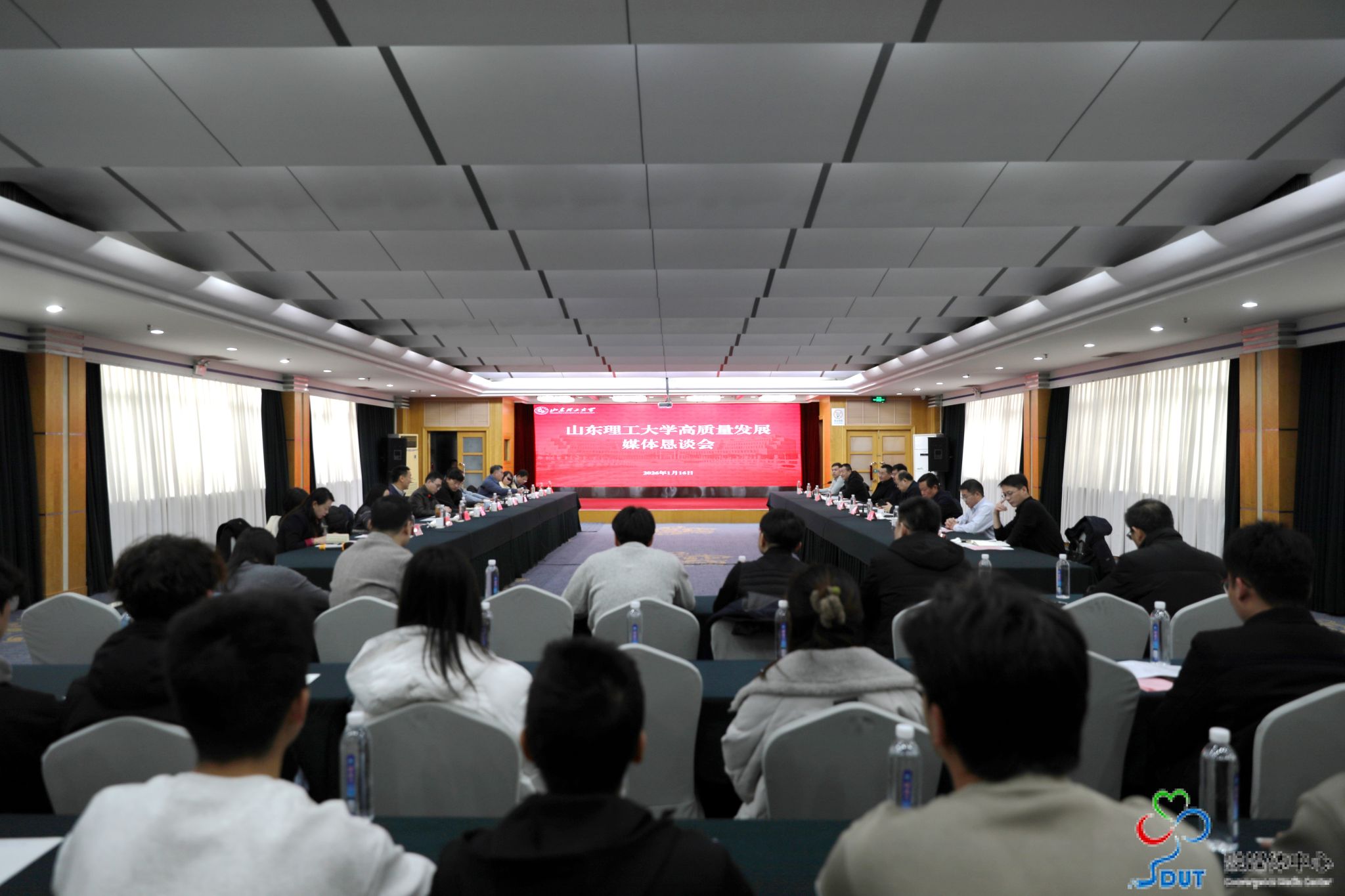 学校相关部门和新闻宣传工作人员、大学生通讯社学生记者参加恳谈会。