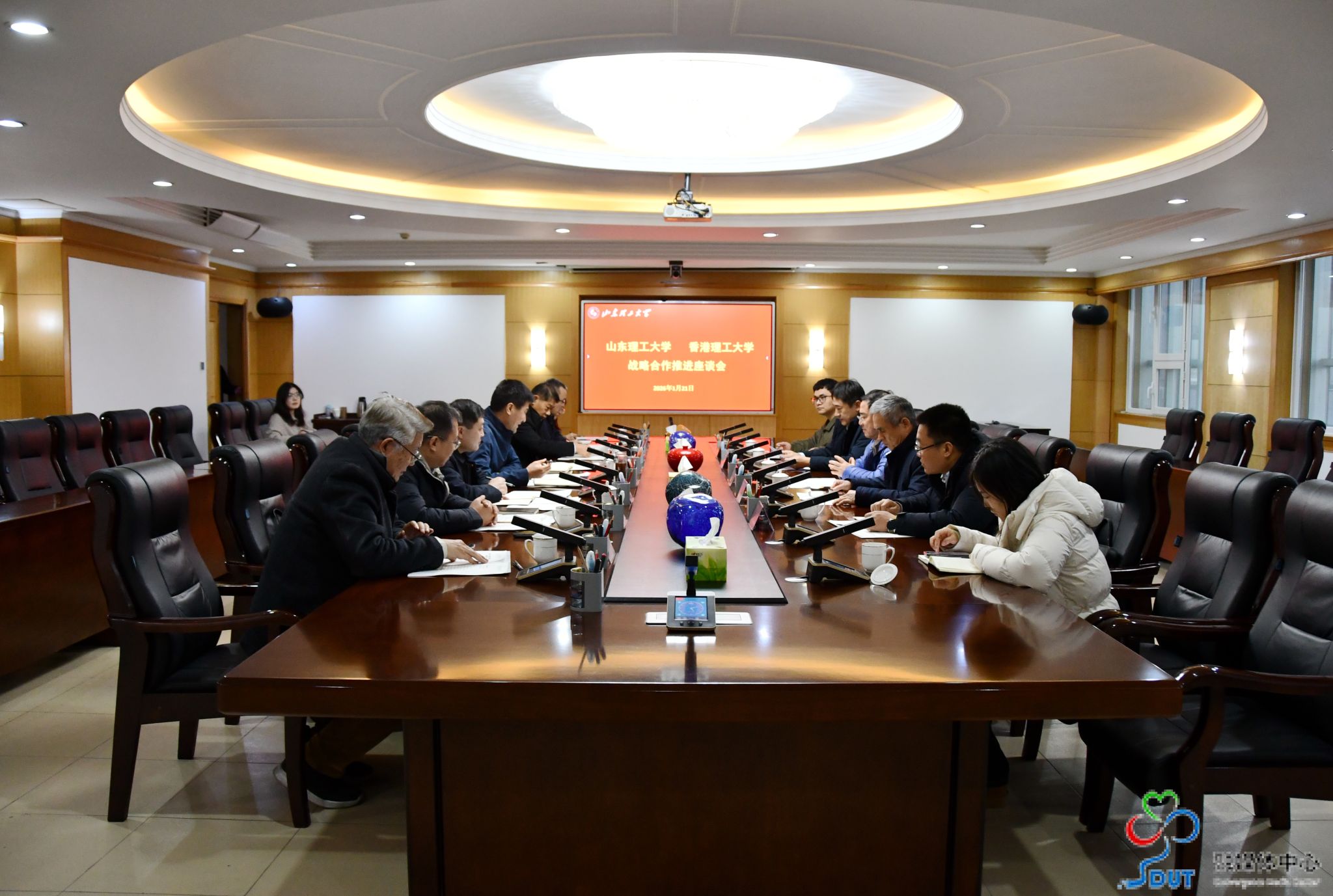 本网讯 1月21日,香港理工大学协理副校长董澄一行来校,就战略合作座谈交流。校党委书记于红波在八楼接待室会见客人,党委常委、副校长陈靖,香港理工大学淄博技术创新研究院院长王立秋,淄博市科学技术局党组书记、局长熊欣出席座谈会。