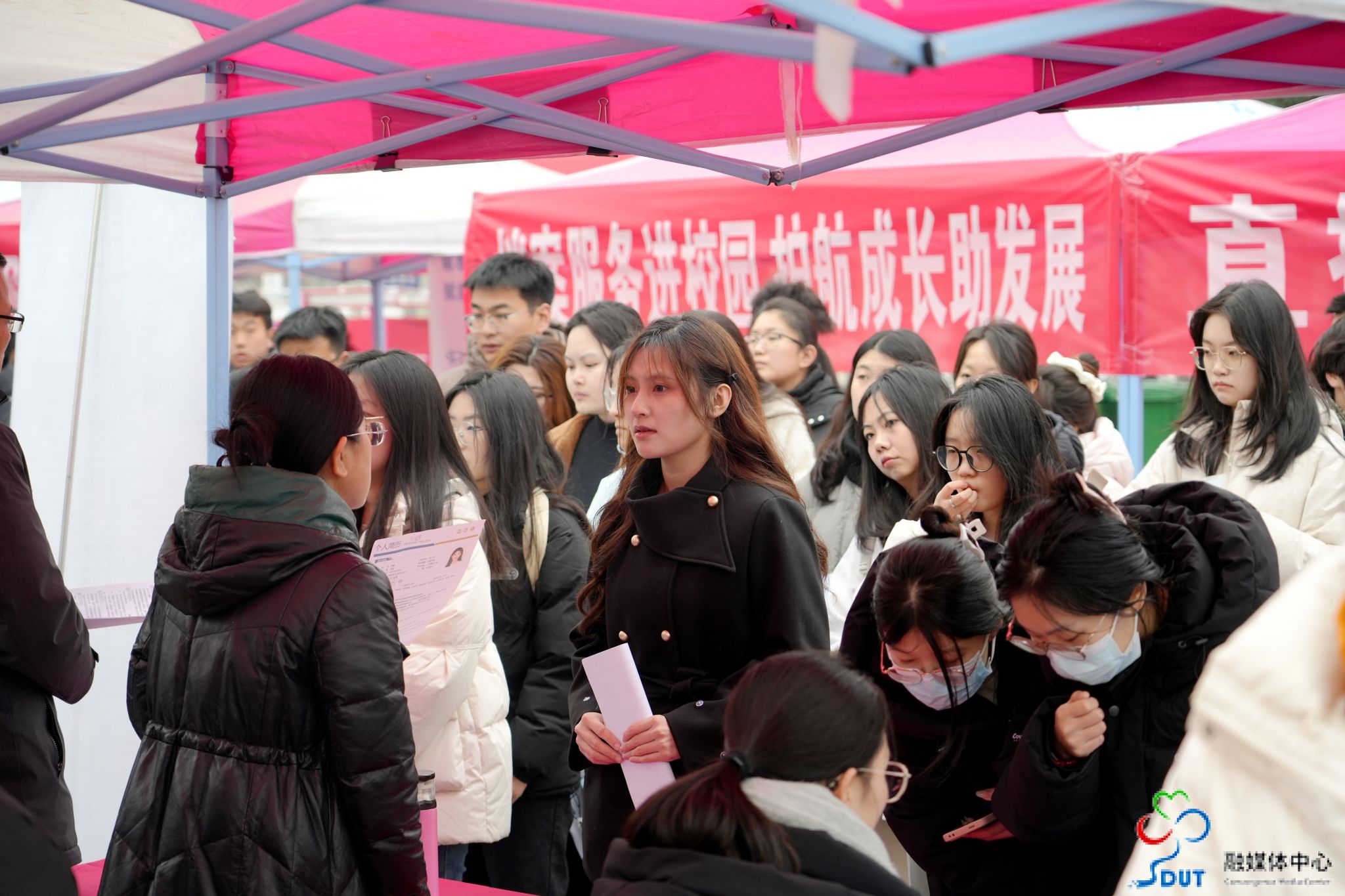 活动现场气氛热烈、人头攒动。毕业生们围绕岗位职责、薪酬待遇、晋升通道等问题与企业招聘负责人深入沟通,积极投递简历。
