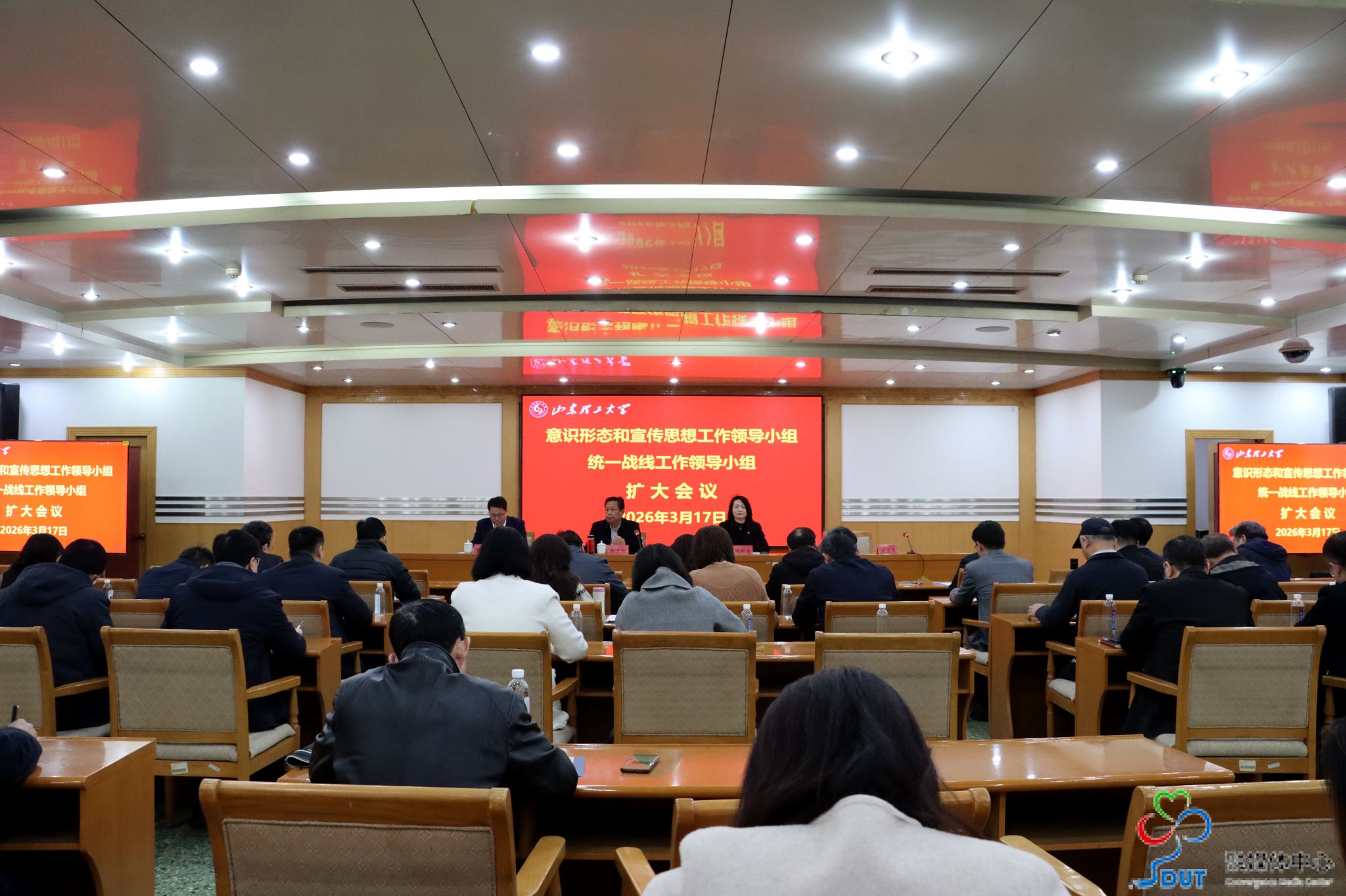 本网讯 3月17日下午,学校在鸿远楼一楼报告厅召开意识形态和宣传思想工作领导小组(扩大)会议暨统一战线工作领导小组(扩大)会议,深入学习贯彻习近平文化思想和习近平总书记关于做好新时代党的统一战线工作的重要思想,传达上级有关会议文件精神,对进一步做好学校意识形态和宣传思想文化工作、统战工作作出部署安排。