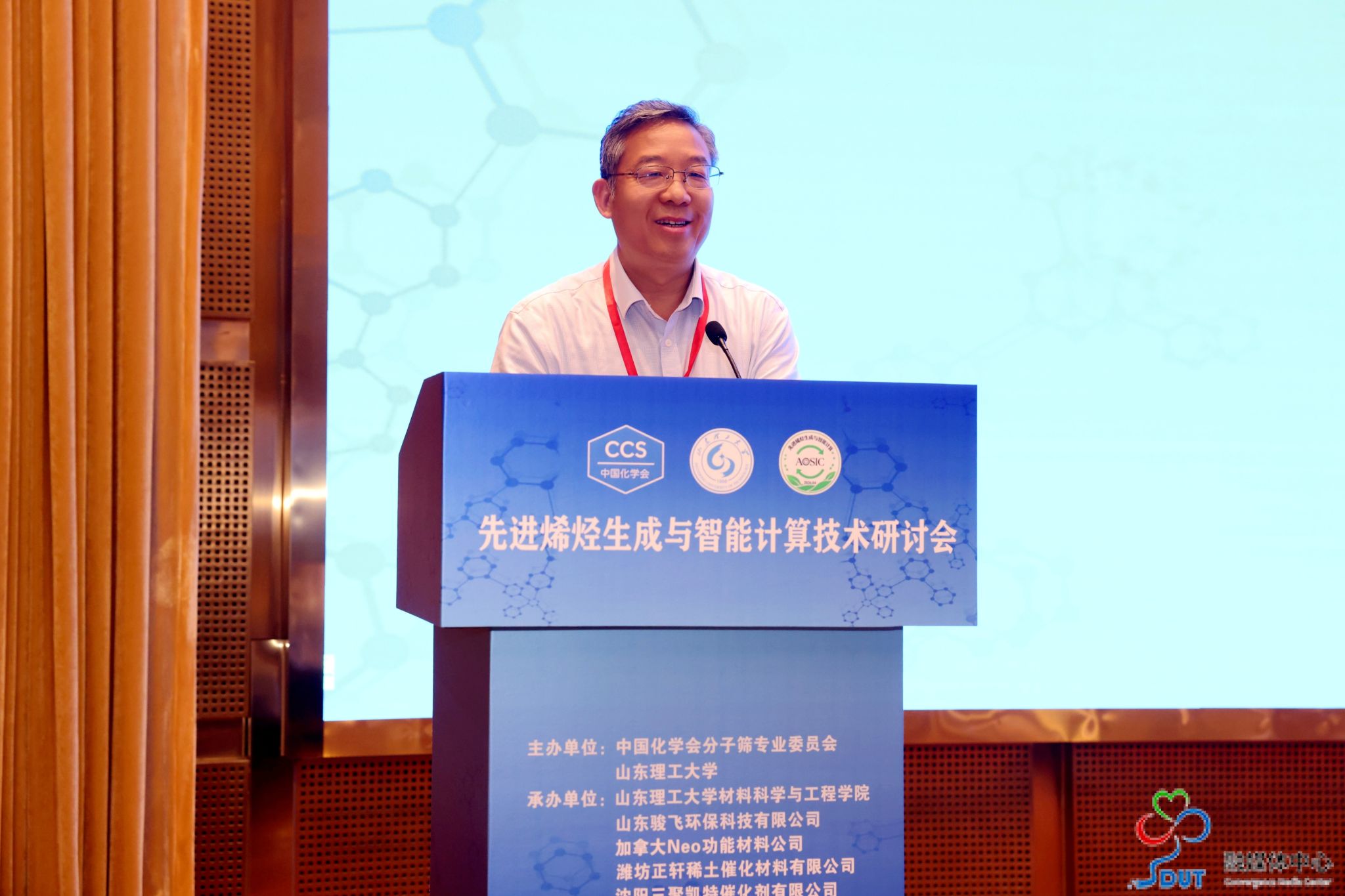 本网讯 4月17日至19日,由中国化学会分子筛专业委员会、我校主办,材料科学与工程学院、山东骏飞环保科技有限公司、潍坊正轩稀土催化材料有限公司、沈阳三聚凯特催化剂有限公司、山东齐鲁华信高科有限公司、山东鲁兴智能科技有限公司、淄博金工电子科技有限公司承办的先进烯烃生成与智能计算技术研讨会(AOSIC)在齐盛国际宾馆召开。来自全国高校、科研院所及烯烃、催化、新材料领域的企业代表、科研人员、研究生共200余人参加会议。