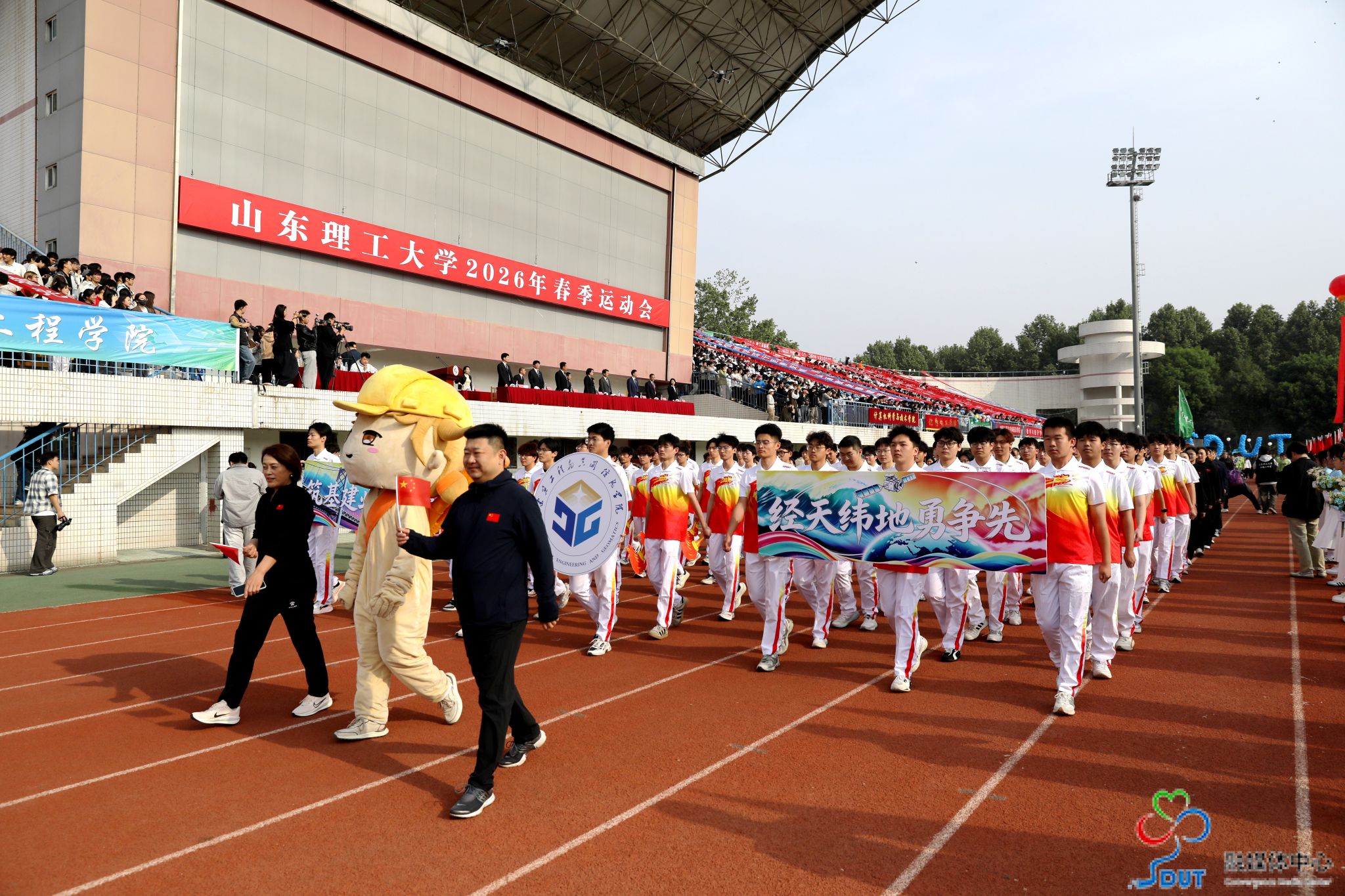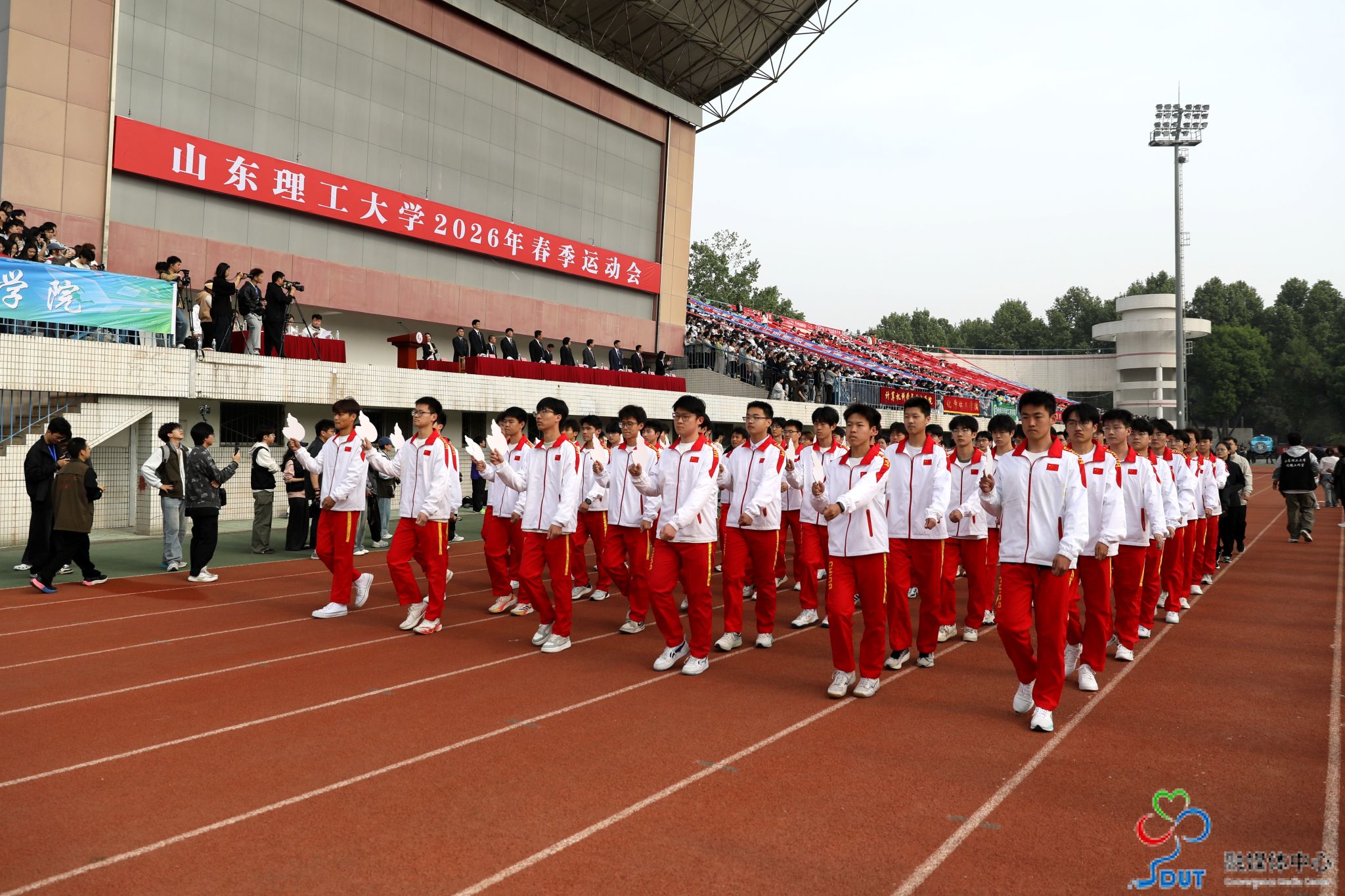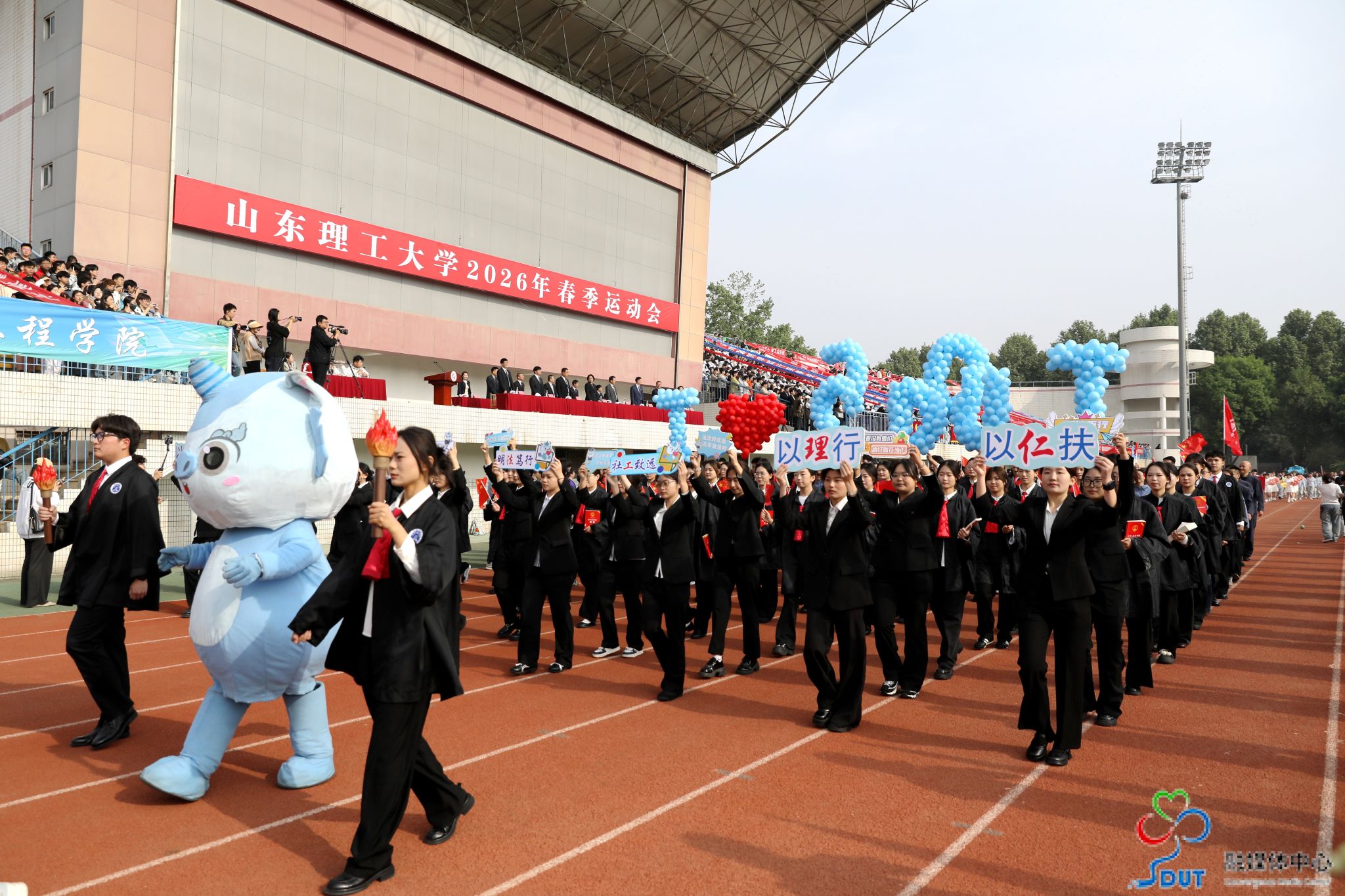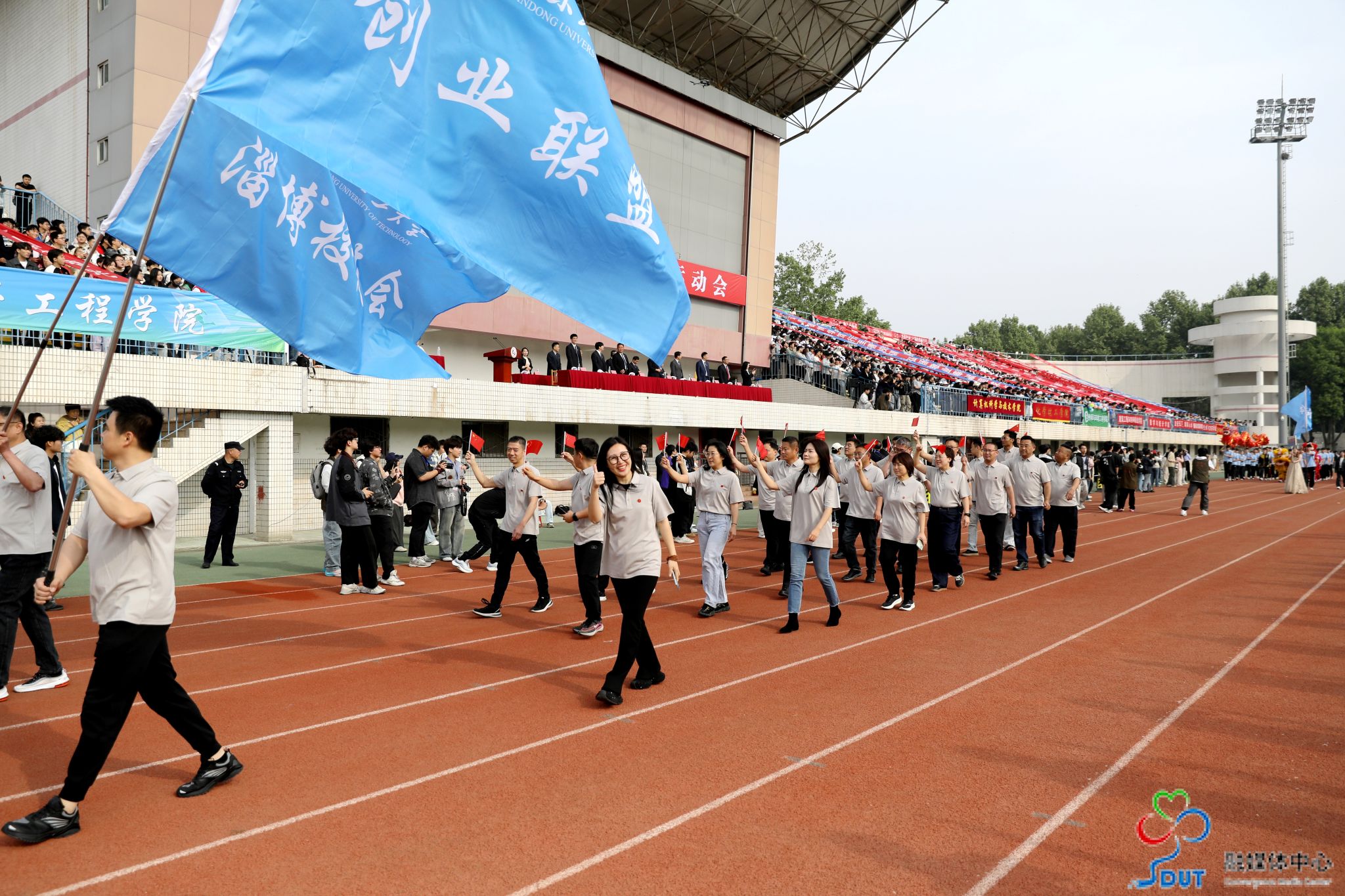 伴随着激昂的运动员进行曲,精神抖擞的国旗、校旗、校徽方阵,青春靓丽的花束方阵、朝气蓬勃的彩旗方阵、意气风发的裁判员方阵及各代表队依次入场,迈着整齐矫健的步伐通过主席台,部分代表队进行了独具特色的个性化形象展示,充分展现了山理工师生激情澎湃、斗志昂扬的精神风貌。在雄壮的国歌声中,鲜艳的五星红旗升起在会场上空。