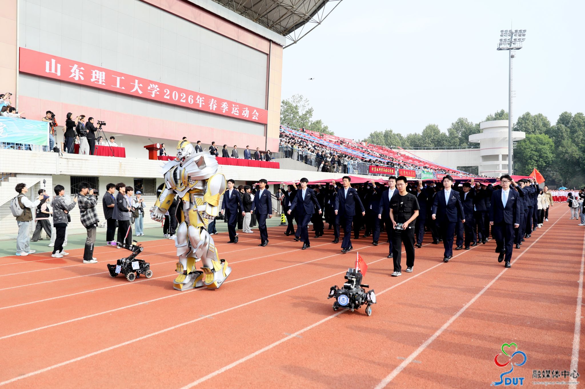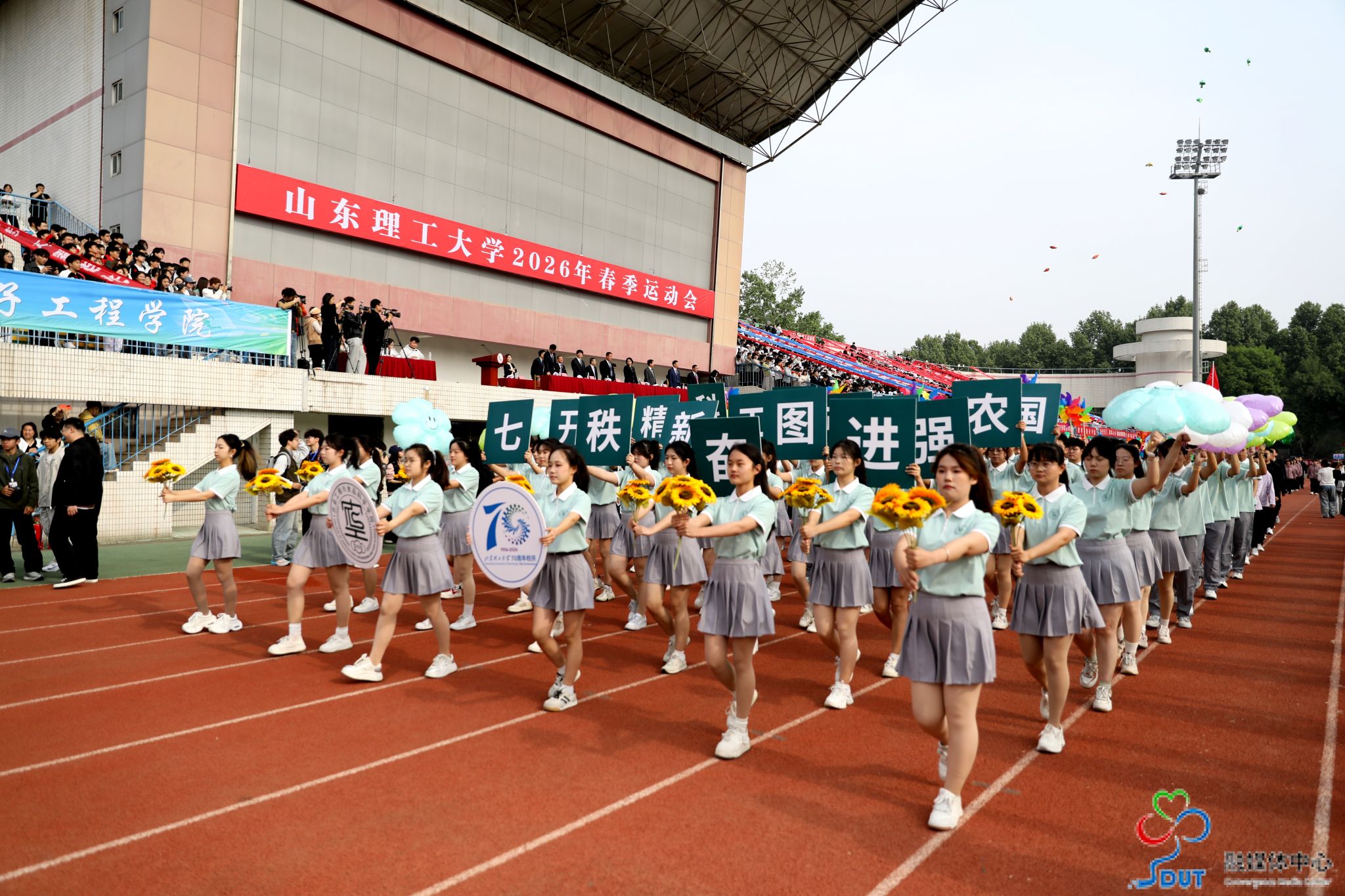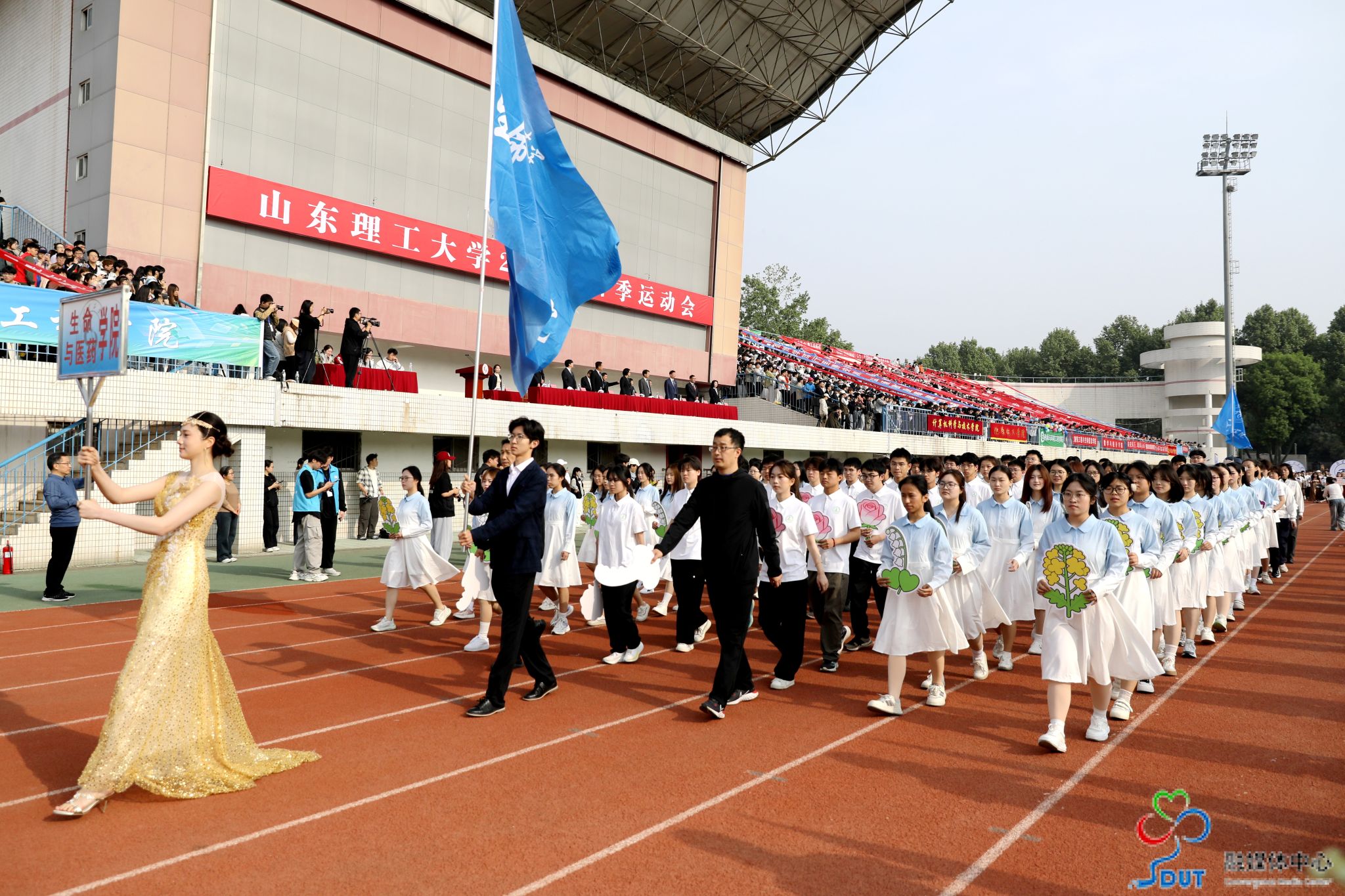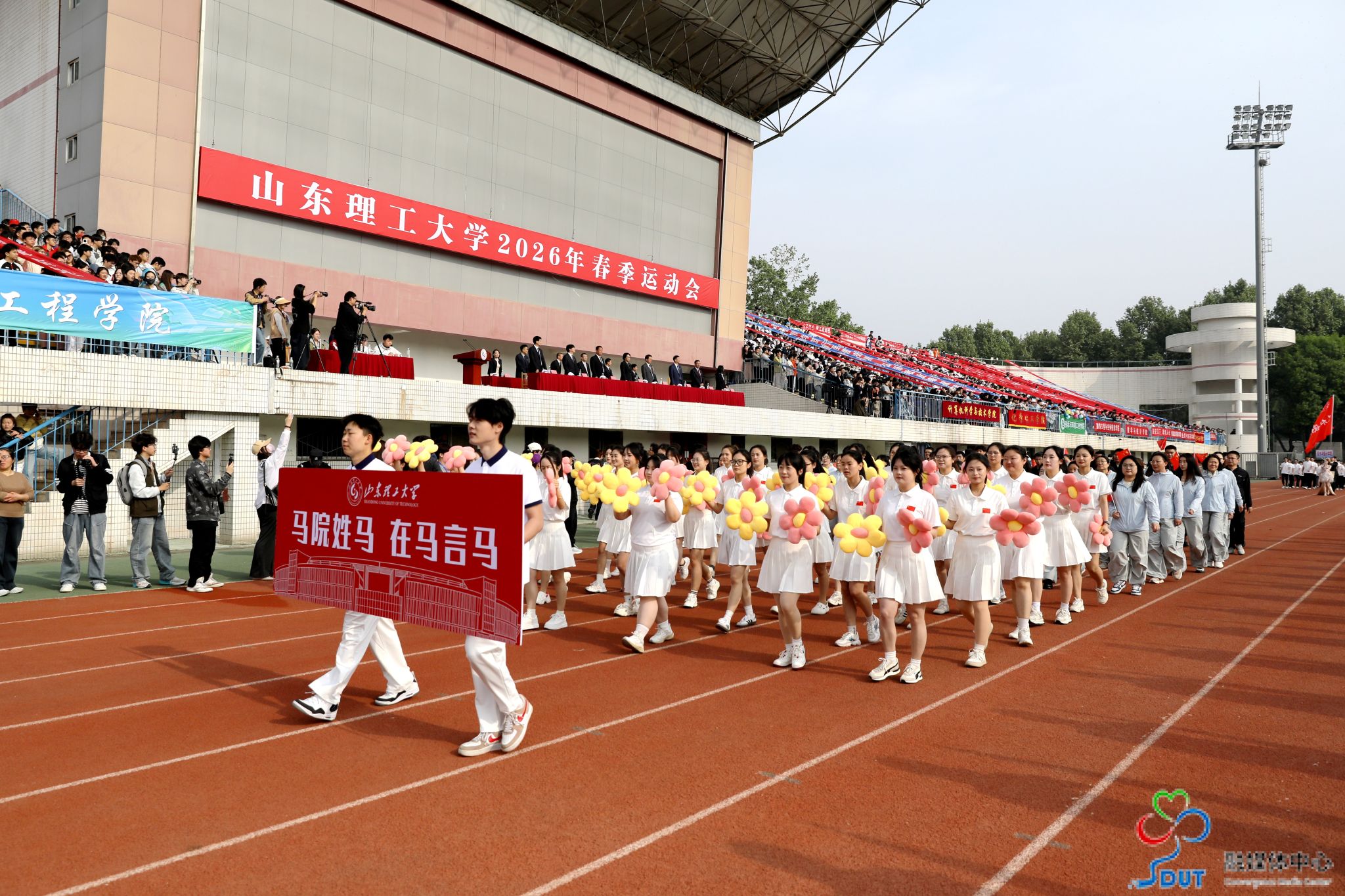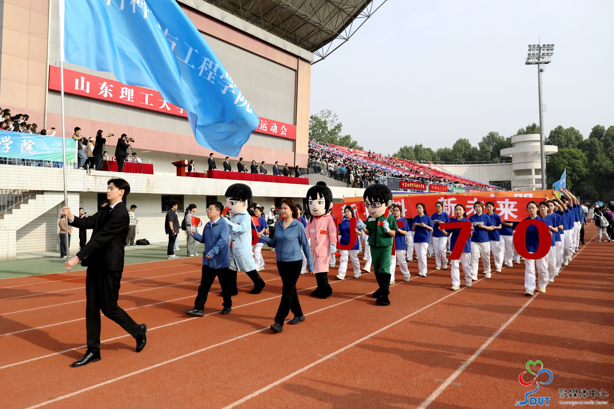 伴随着激昂的运动员进行曲,精神抖擞的国旗、校旗、校徽方阵,青春靓丽的花束方阵、朝气蓬勃的彩旗方阵、意气风发的裁判员方阵及各代表队依次入场,迈着整齐矫健的步伐通过主席台,部分代表队进行了独具特色的个性化形象展示,充分展现了山理工师生激情澎湃、斗志昂扬的精神风貌。在雄壮的国歌声中,鲜艳的五星红旗升起在会场上空。
