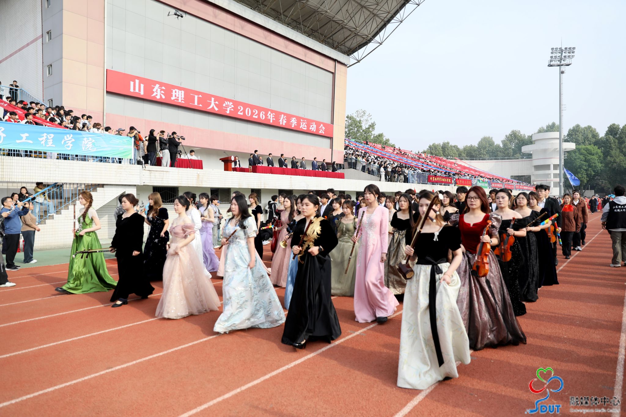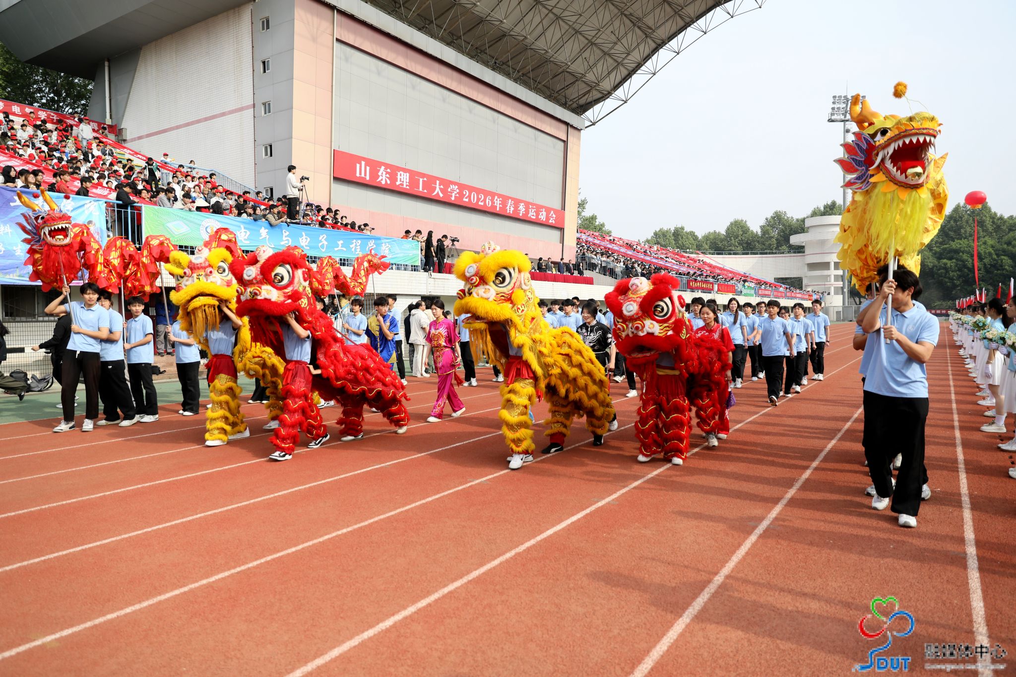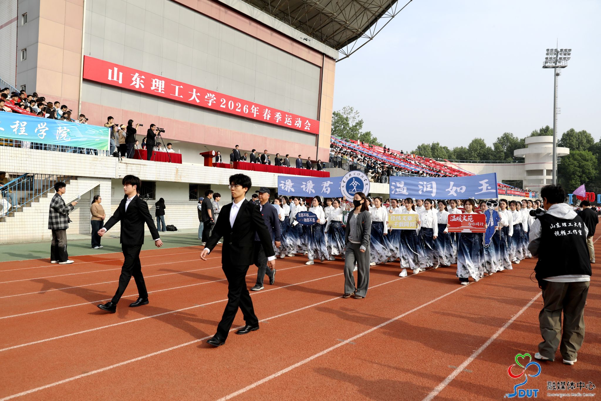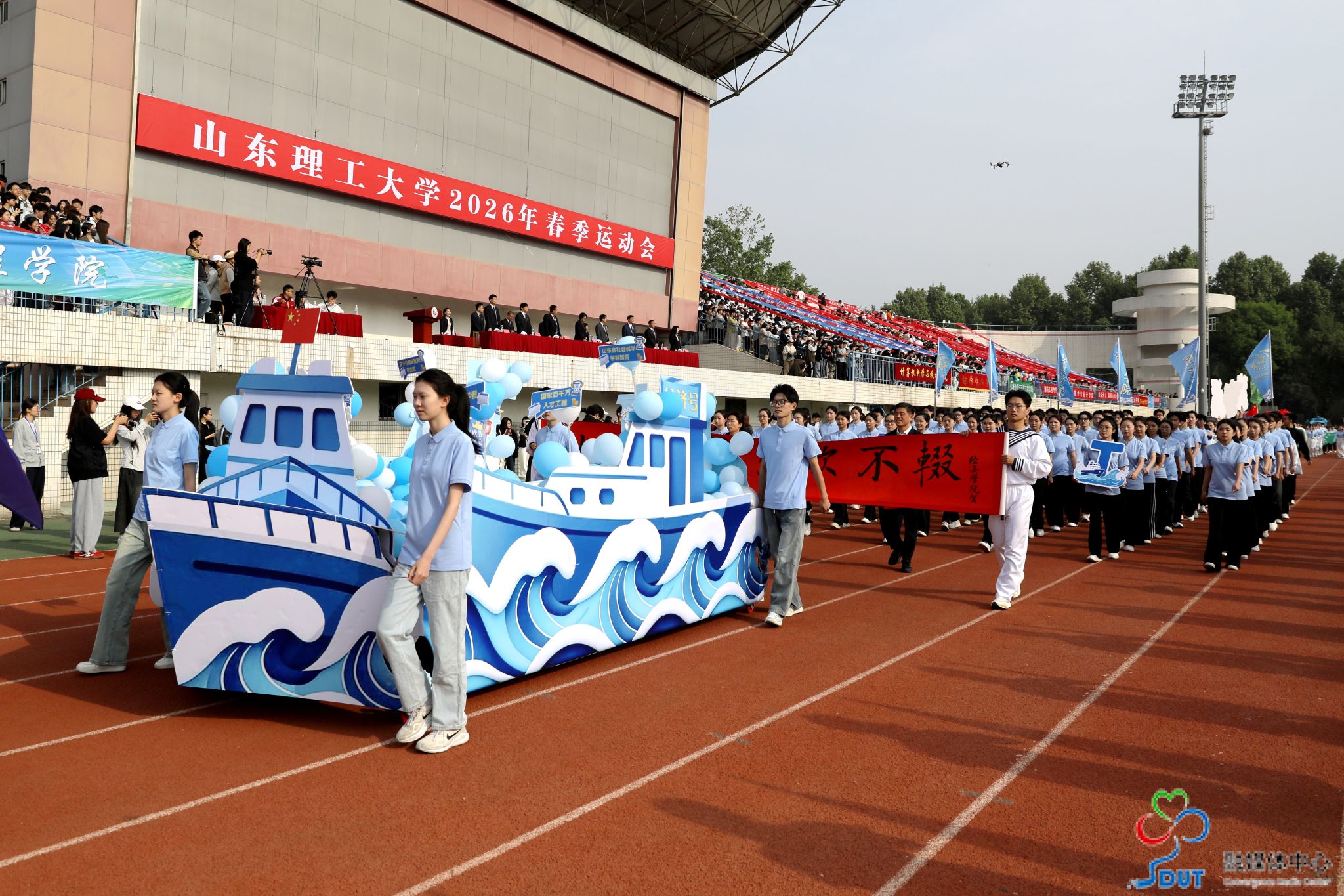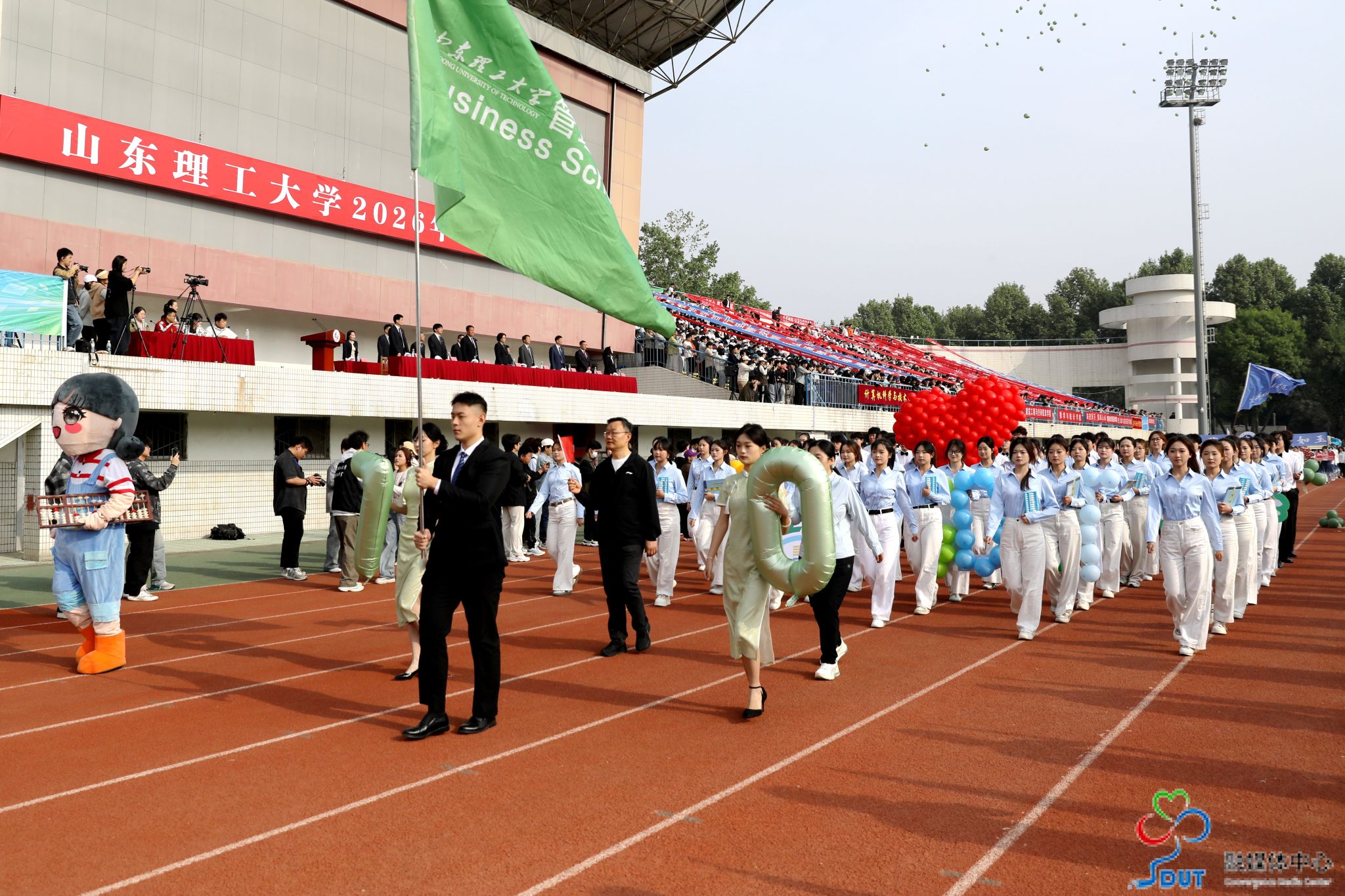 伴随着激昂的运动员进行曲,精神抖擞的国旗、校旗、校徽方阵,青春靓丽的花束方阵、朝气蓬勃的彩旗方阵、意气风发的裁判员方阵及各代表队依次入场,迈着整齐矫健的步伐通过主席台,部分代表队进行了独具特色的个性化形象展示,充分展现了山理工师生激情澎湃、斗志昂扬的精神风貌。在雄壮的国歌声中,鲜艳的五星红旗升起在会场上空。