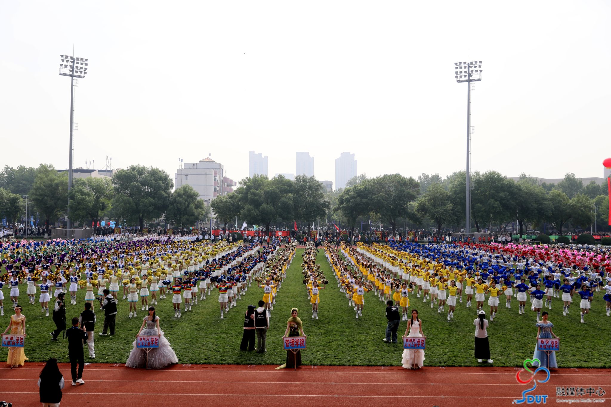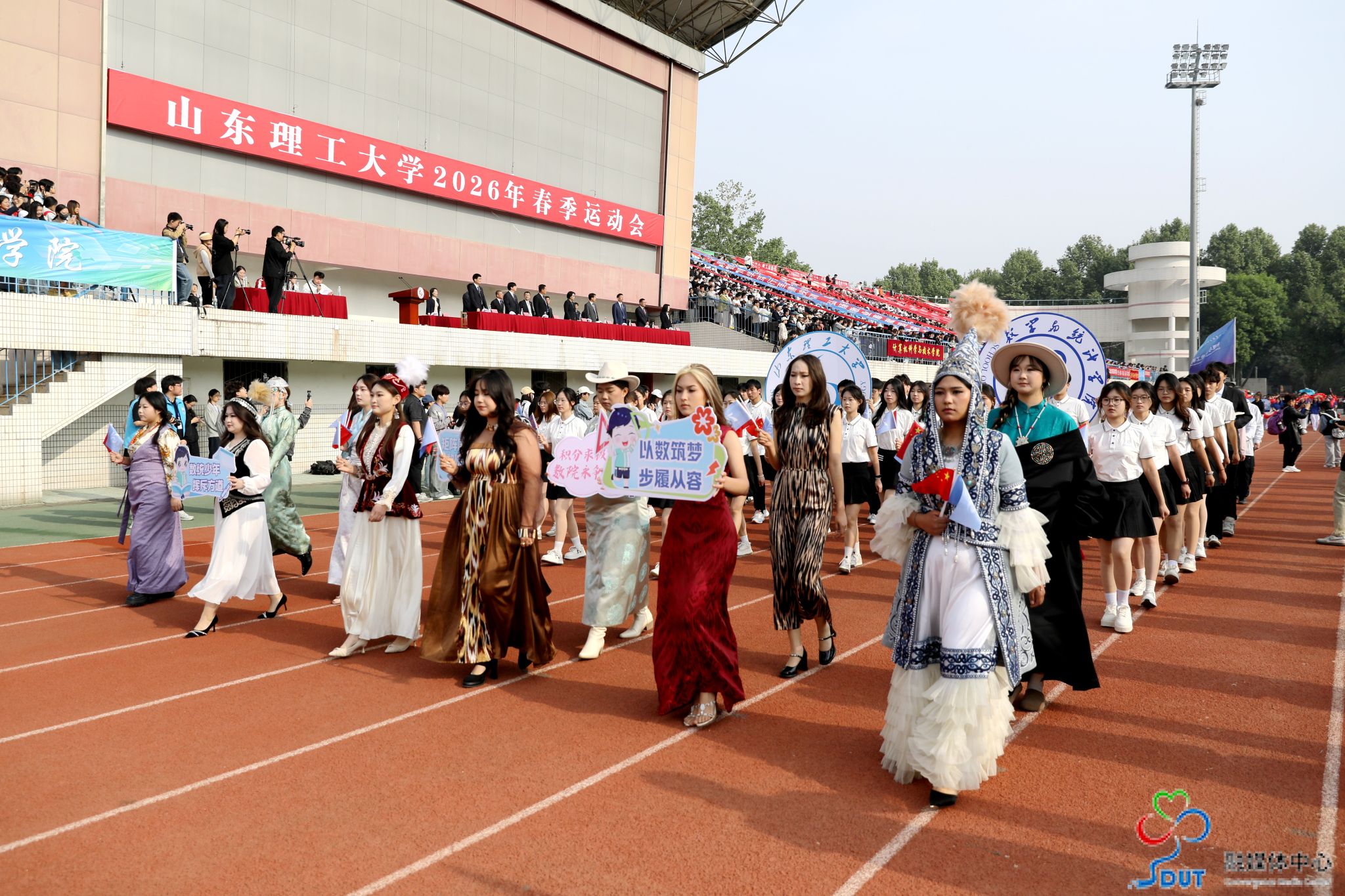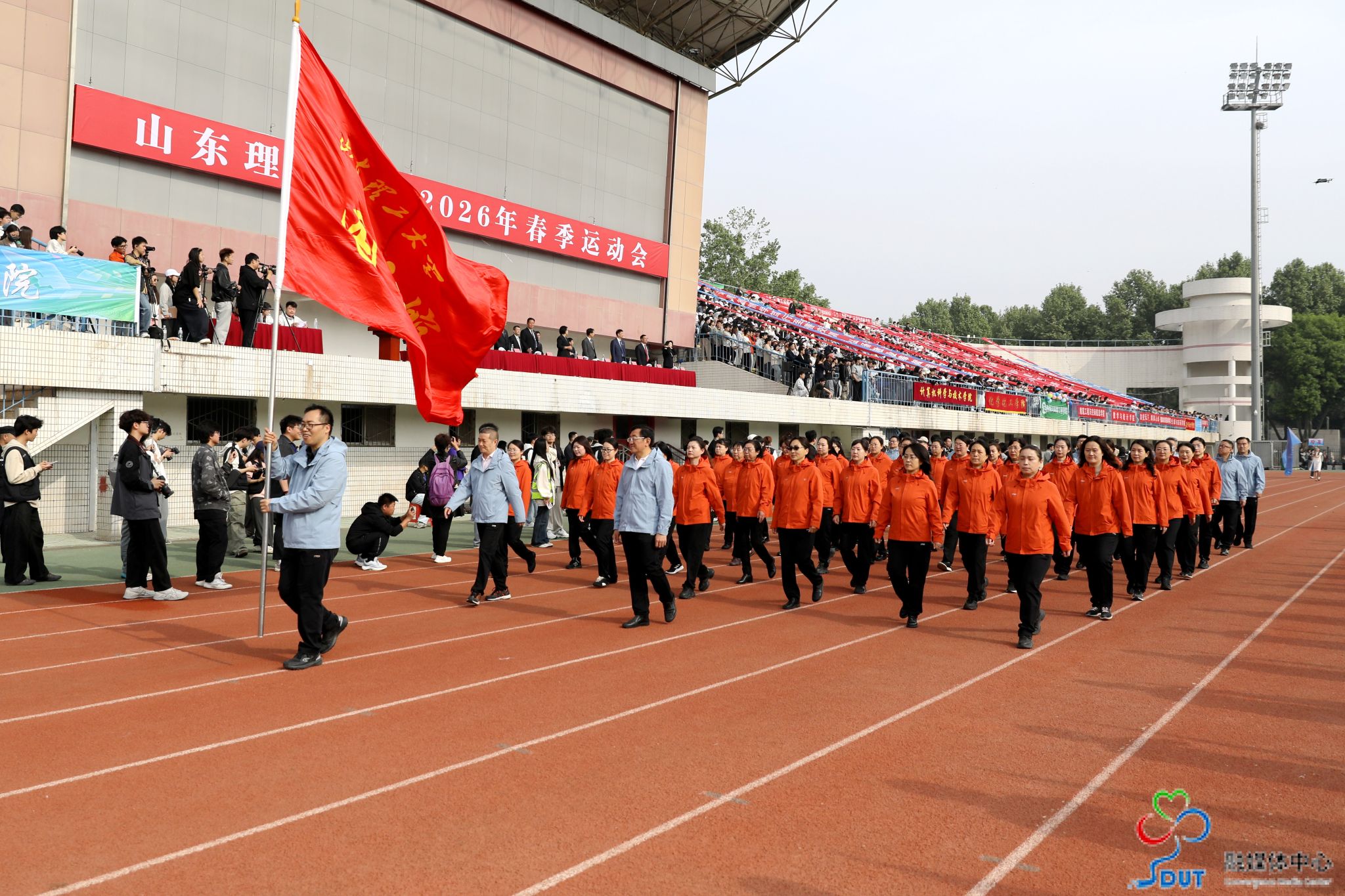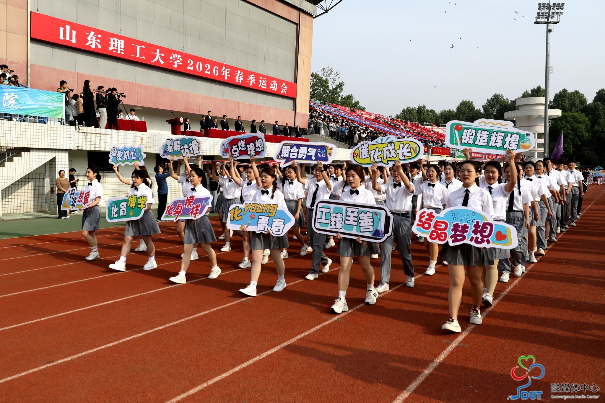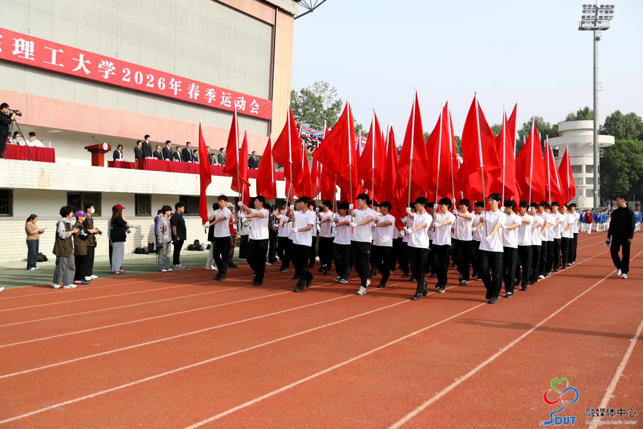 本网讯 草长莺飞,春和景明。4月23日上午,学校2026年春季运动会在西校区中心体育场隆重开幕,校领导李玉霞、苏守波、杜方岭、郭庆兵、陈盛伟、崔焕勇、陈靖、庞秋香及大会主席团成员出席开幕式并在主席台就座。开幕式由党委常委、副校长,学校体育运动委员会主任陈靖主持。
