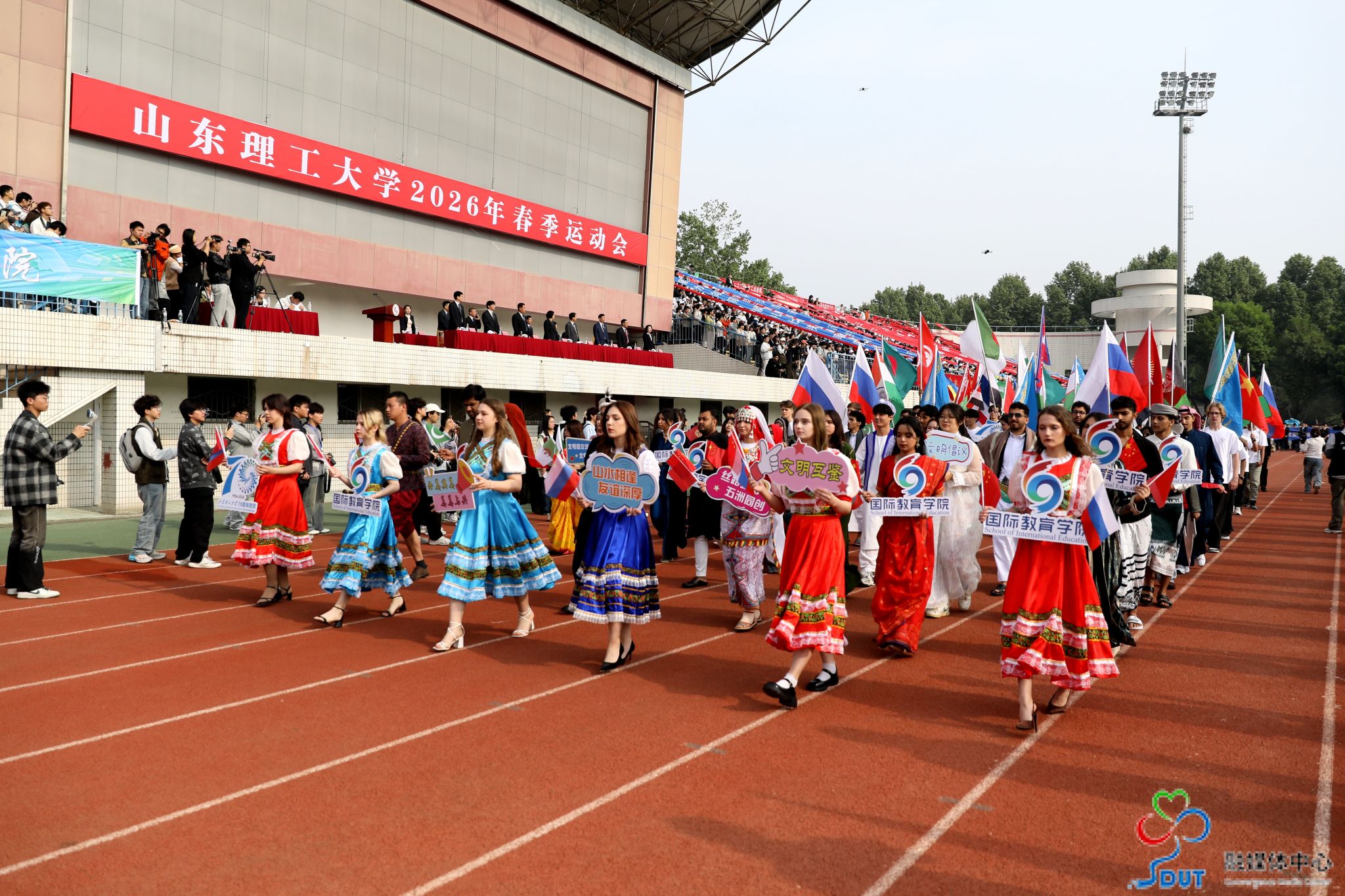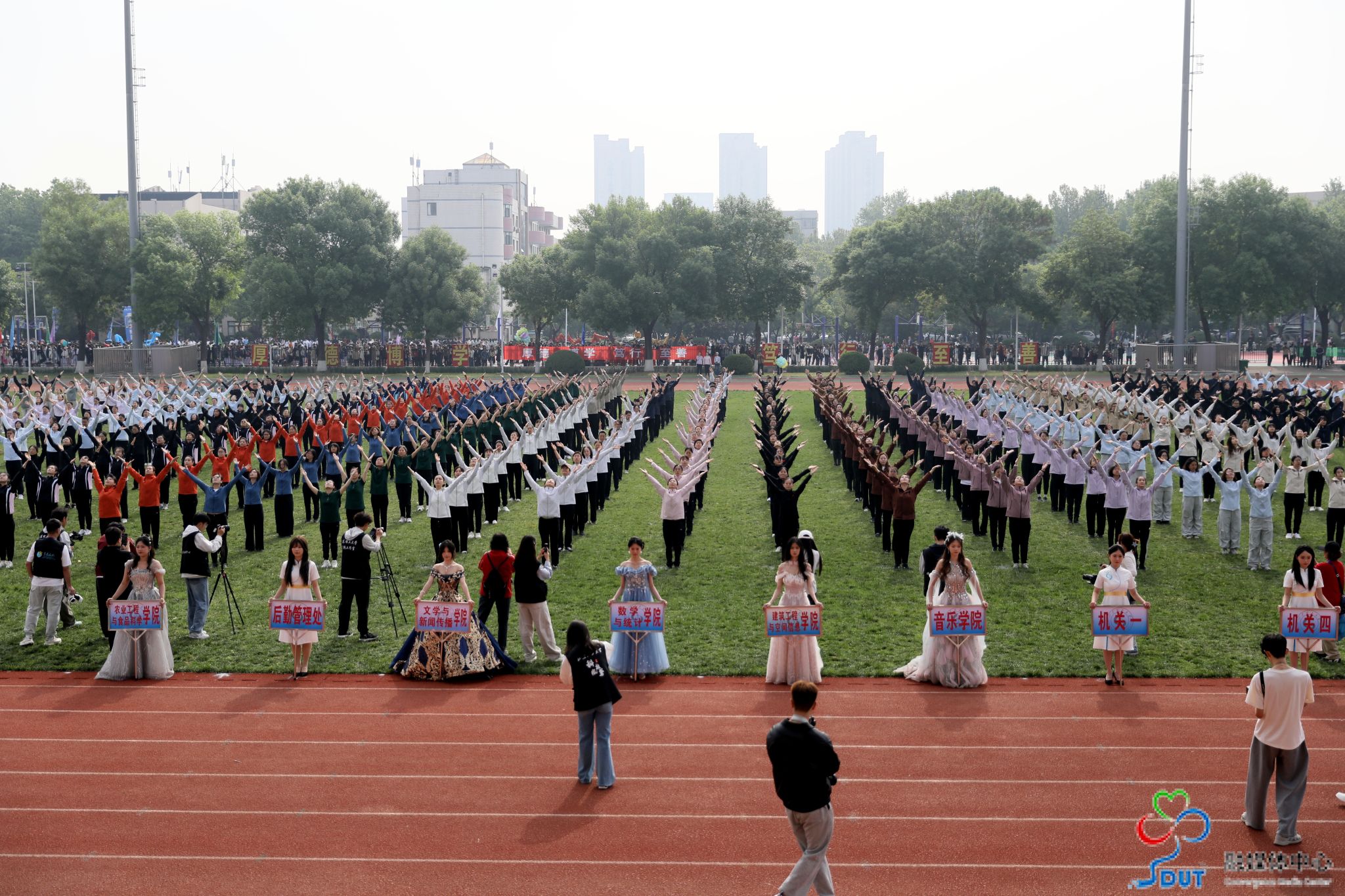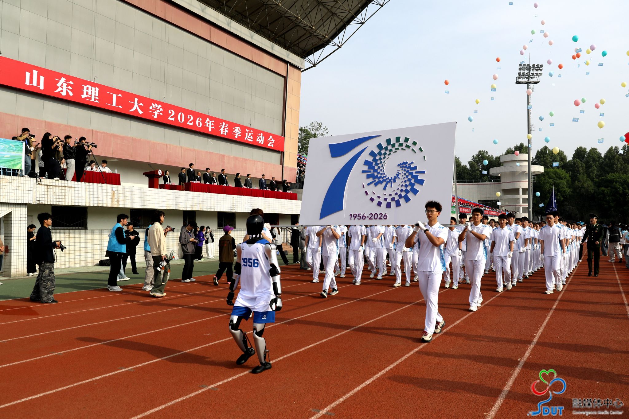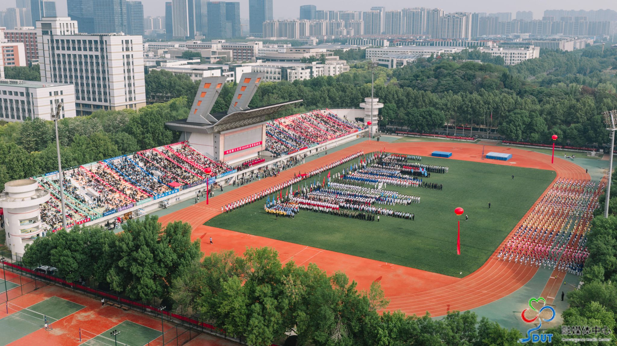 本网讯 草长莺飞,春和景明。4月23日上午,学校2026年春季运动会在西校区中心体育场隆重开幕,校领导李玉霞、苏守波、杜方岭、郭庆兵、陈盛伟、崔焕勇、陈靖、庞秋香及大会主席团成员出席开幕式并在主席台就座。开幕式由党委常委、副校长,学校体育运动委员会主任陈靖主持。
