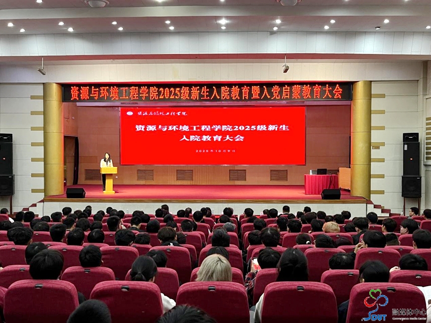本网讯 10月9日晚7时,资源与环境工程学院在3号教学楼报告厅召开2025级新生入院教育暨入党启蒙教育大会。学院领导班子成员、各系主任、2025级班主任、全体辅导员及 2025级全体新生参加。