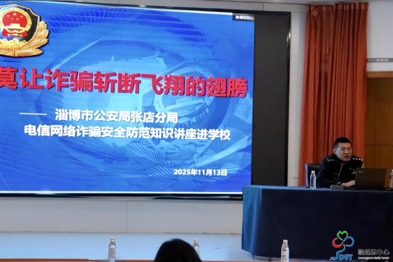 本网讯 为切实增强新生防范网络诈骗意识与能力,筑牢校园安全防线,11月13日下午,经济学院在东校区图书馆报告厅举办电信网络诈骗安全防范知识讲座。此次讲座邀请淄博市公安局张店分局法治辅导员主讲,学院2025级新生参会。