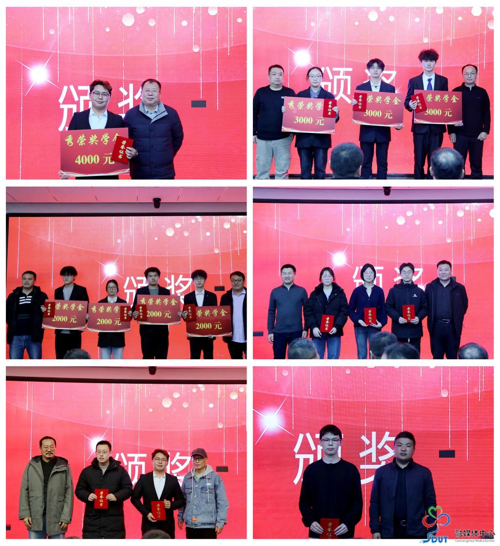 在热烈掌声中,颁奖嘉宾为获奖学生颁发荣誉证书与奖金。