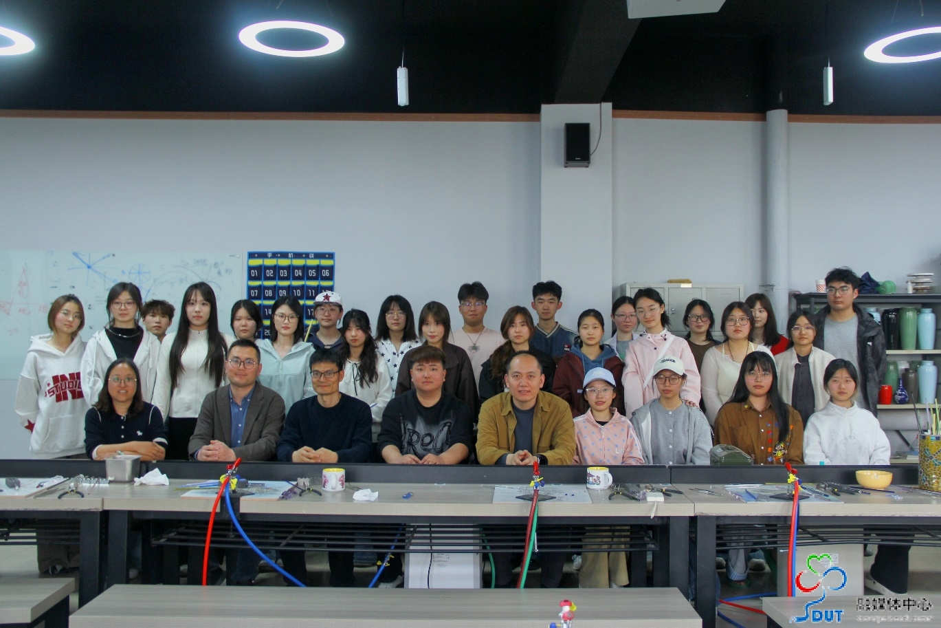 孙启烨以个人成长经历为引、以经典代表作品为范例,系统分享创作理念、设计思路与实操技法。同学们在聆听创作故事、感悟艺术历程的同时,被孙启烨精益求精、笃行不怠的匠心精神深深感染。现场演示琉璃蝴蝶制作全流程,从火焰温度精准调控、琉璃料棒熔融塑形,到细节雕琢与成型把控,每一步讲解细致入微,尽显琉璃工艺的精妙与魅力。