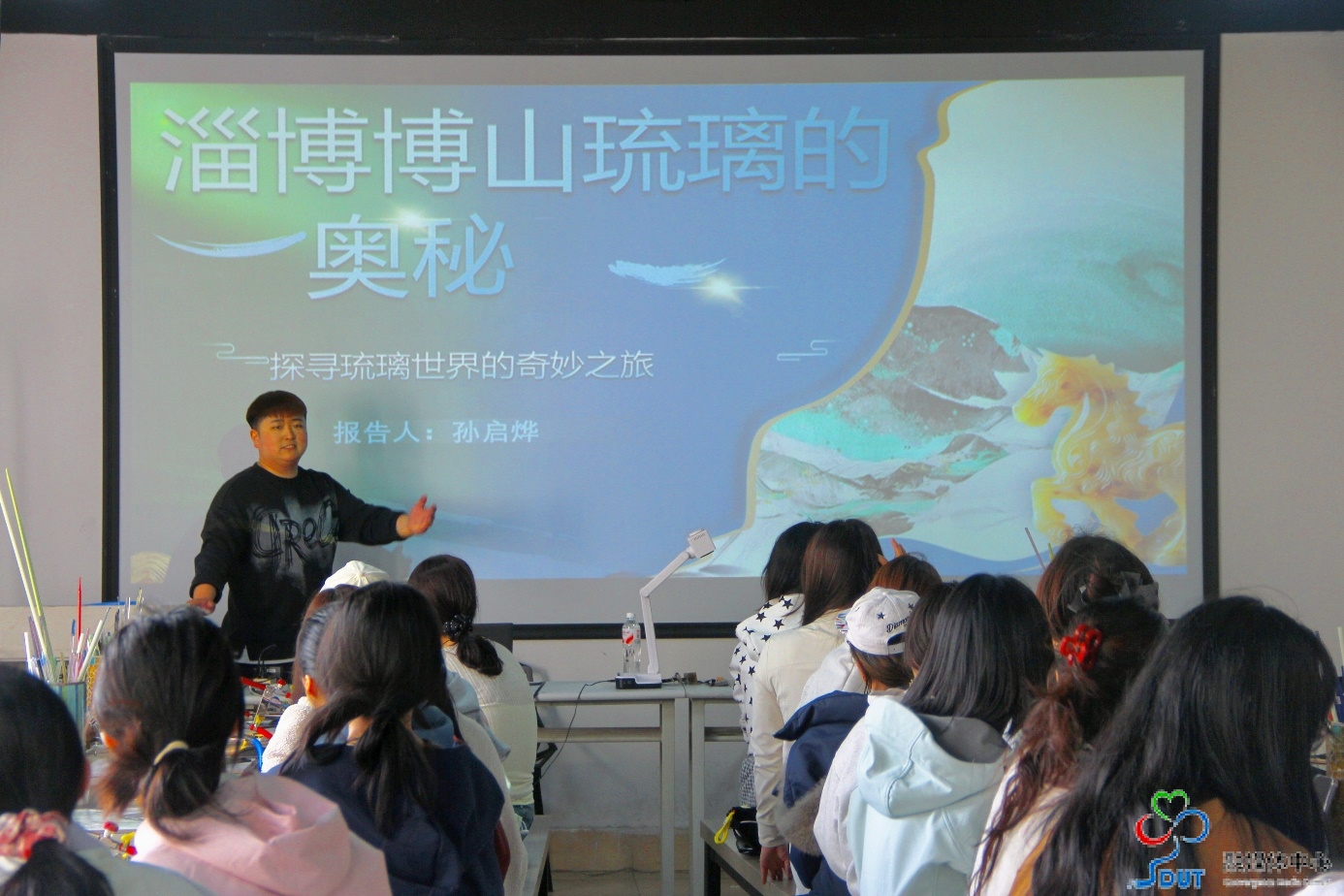 本网讯 为浓厚学校70周年校庆氛围,推动陶瓷琉璃艺术的传承与发展,促进陶瓷琉璃艺术的创新与交流。4月2日下午,美术与设计学院在11号教学楼243教室举办“艺彩华章”陶瓷琉璃艺术大师进校园美育工作坊活动,特邀青年琉璃手艺人、彭青艾琉璃艺术馆经理、淄博琉璃新生代代表人物孙启烨现场授课。学院副院长高明伟主持,学院部分师生代表参加。