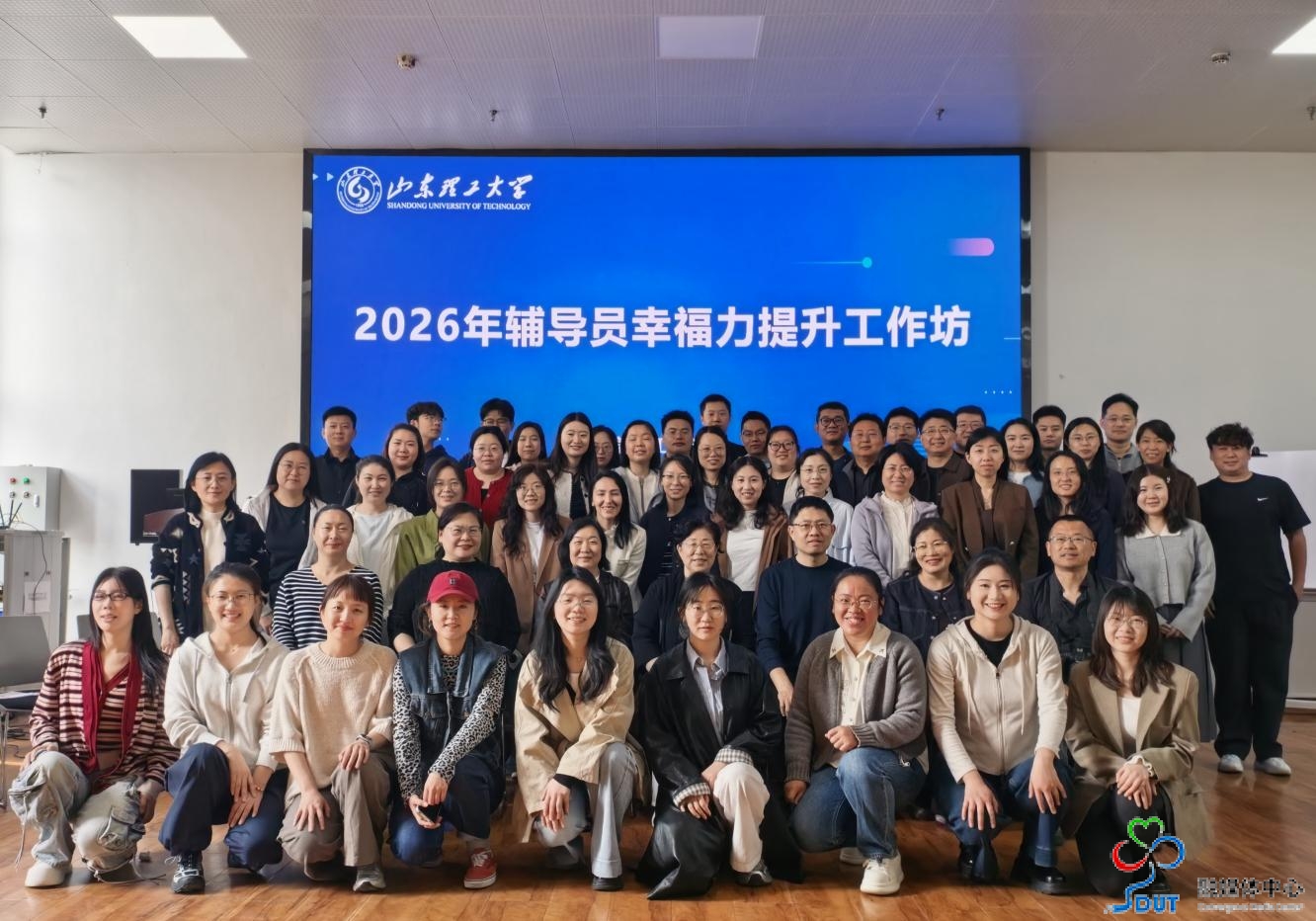 本网讯 为进一步提升辅导员心理育人能力,促进自身幸福与成长,更好地服务学生成长成才,4月14日至15日,由山东理工大学学生心理健康教育与咨询中心组织的“辅导员幸福力提升工作坊”在西校区大红炉二楼路演厅举行。来自各学院的40余名辅导员参加本次培训。