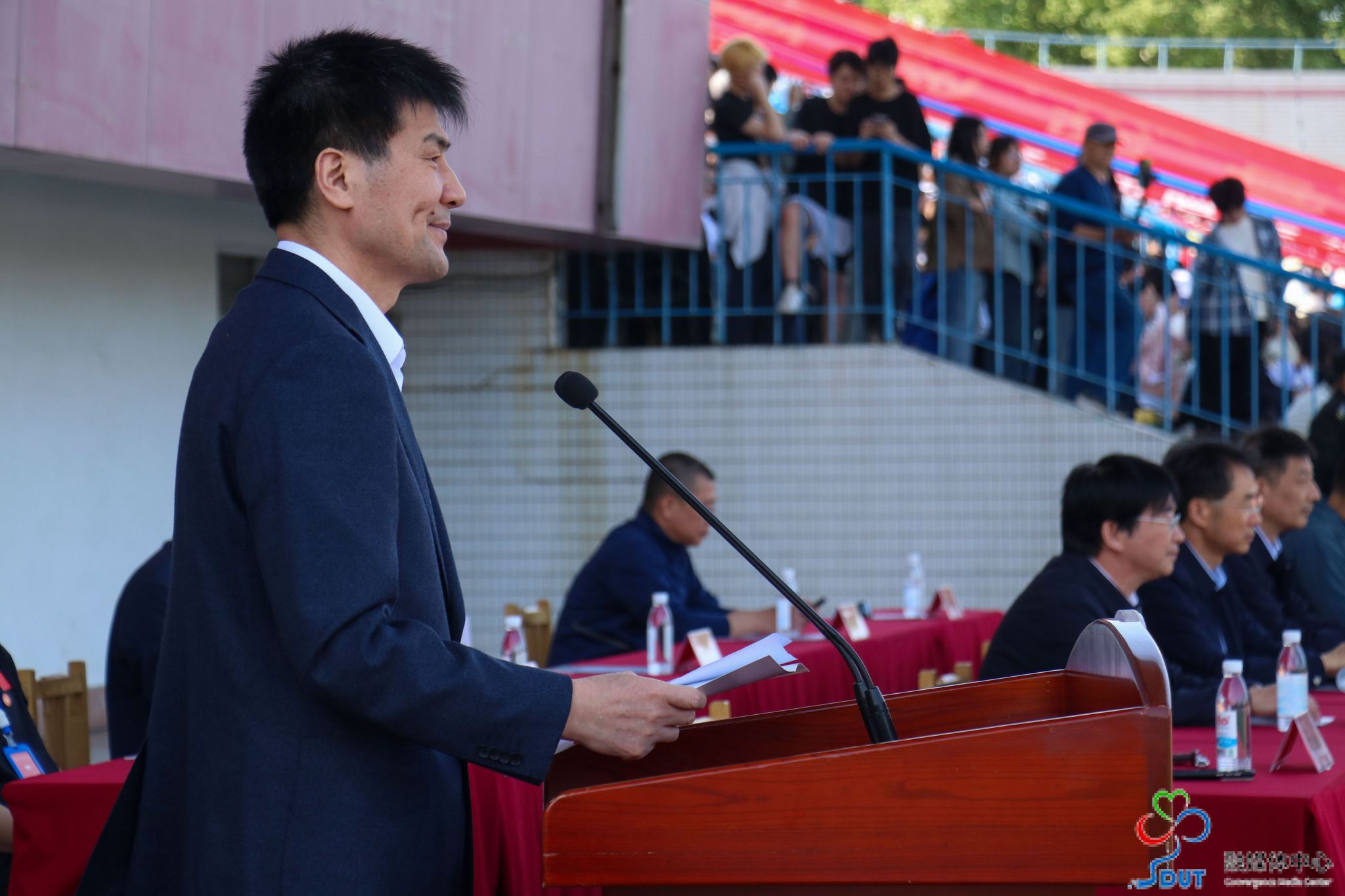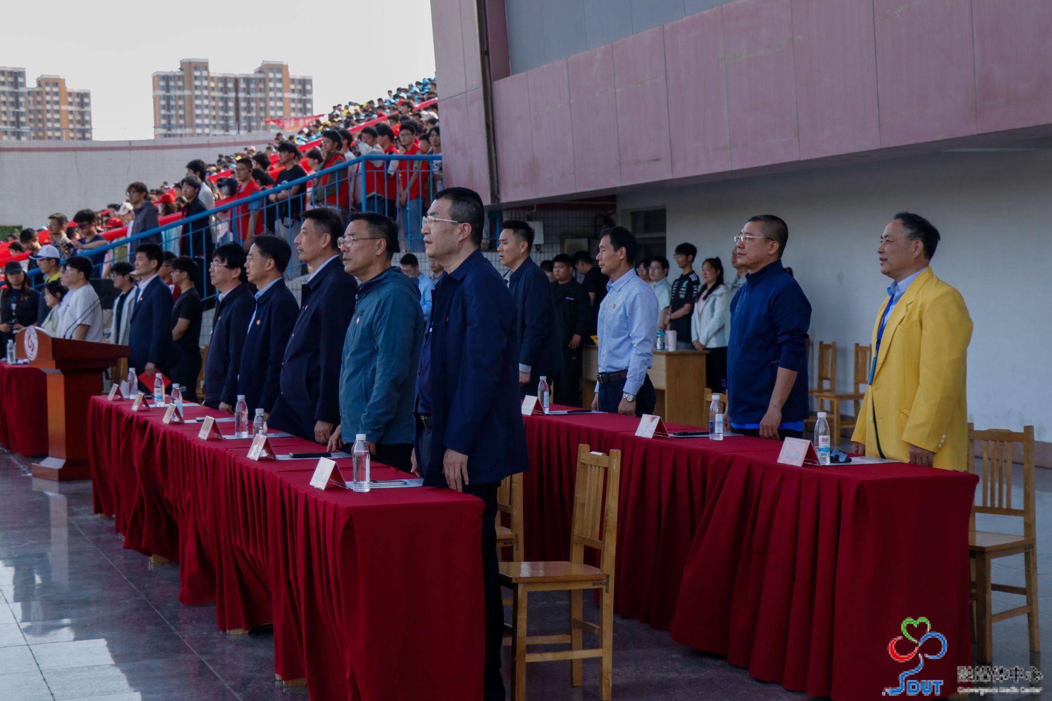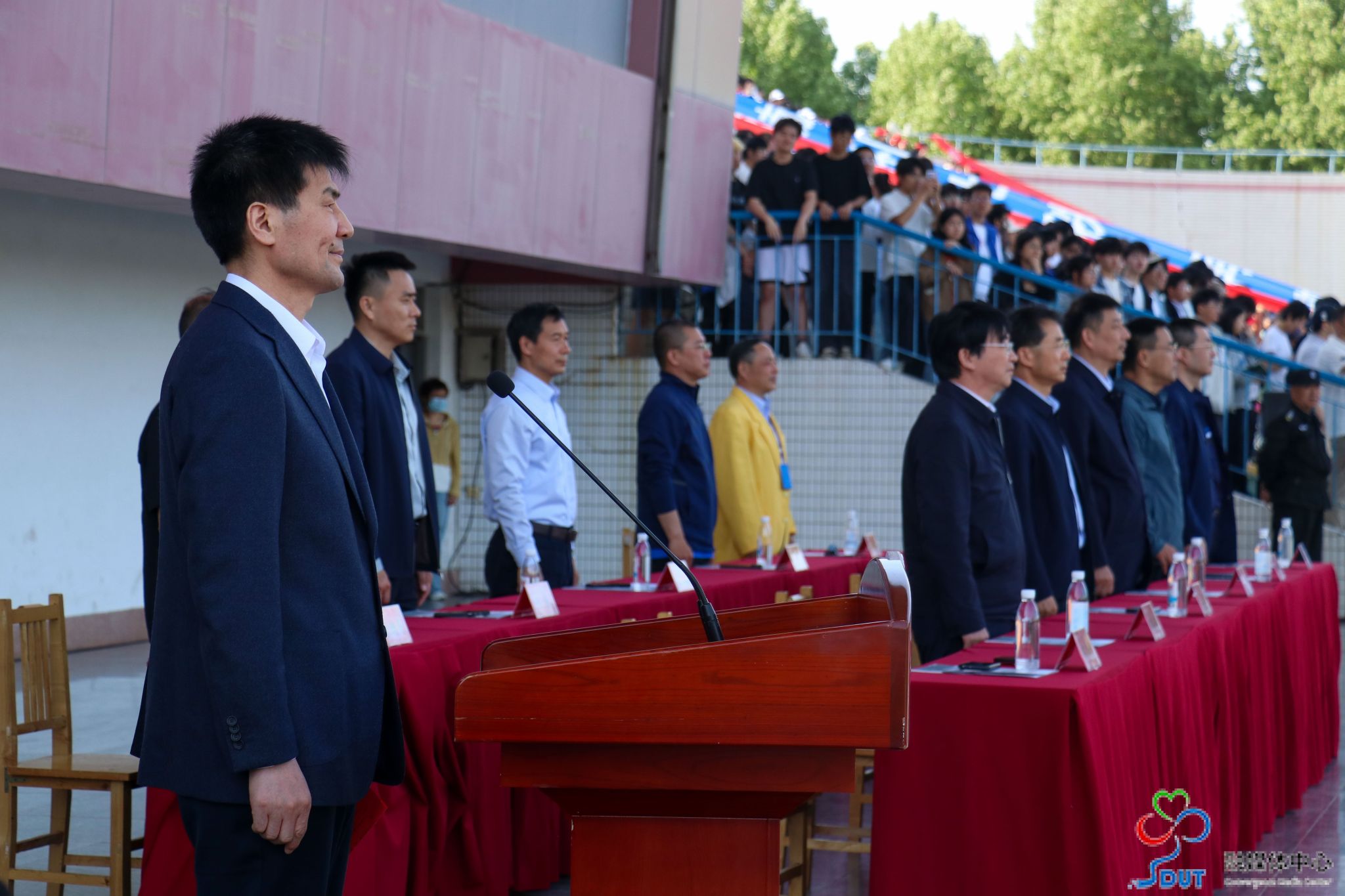 全体师生共同唱响校歌,氛围庄重